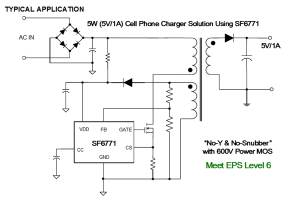 SF6771是一顆高達(dá)6級能效的高效率、高性以電源管理IC其采用先進(jìn)的PSB原邊控制技術(shù),解決了能效高,保護(hù)功能齊全,精度高,穩(wěn)定性高,產(chǎn)品體積小等一系列現(xiàn)低電源設(shè)計(jì)要求,主要適用于20W以內(nèi)的充電器,LED驅(qū)動電源,適配器等產(chǎn)品中