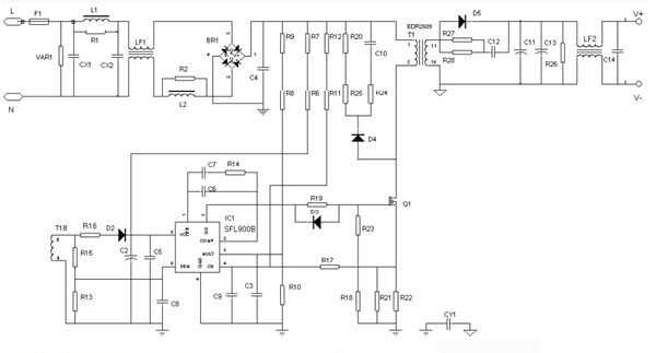 SFL900是采用業(yè)內(nèi)首創(chuàng)的“super-PFC/PSR”控制架構(gòu),同時支持原邊反饋(psr)和次級光耦反饋(SSR)適用于隔離LED照明場合,該系列應(yīng)用在PSR場合可以實現(xiàn)5%以內(nèi)的恒流精度,10%以內(nèi)的THD和高PF值。SFL900的管腳布局兼容主流的PFC芯片XX6562/X7527的腳位,大大增加了應(yīng)用的靈活性,該芯片內(nèi)置“軟啟動”和“反饋網(wǎng)絡(luò)清零控制”大大降低啟動電流過沖,SFL900內(nèi)置專利的“Min-THDTM"技術(shù),大大降低了THD,同時內(nèi)置90KHZ鉗頻,相對于臨界導(dǎo)通模式而言,系統(tǒng)EMI性能大大改善。SFL900還集成了諸多保護(hù)功能,比如:VCC欠壓保護(hù)(UVLO),VCC過壓保護(hù),逐周期過流保護(hù),GATE辦輸出電壓鉗位保護(hù),LED短路打嗝保護(hù),LED開路保護(hù),軟驅(qū)動,SFL900提供SOP8和DIP8封裝。