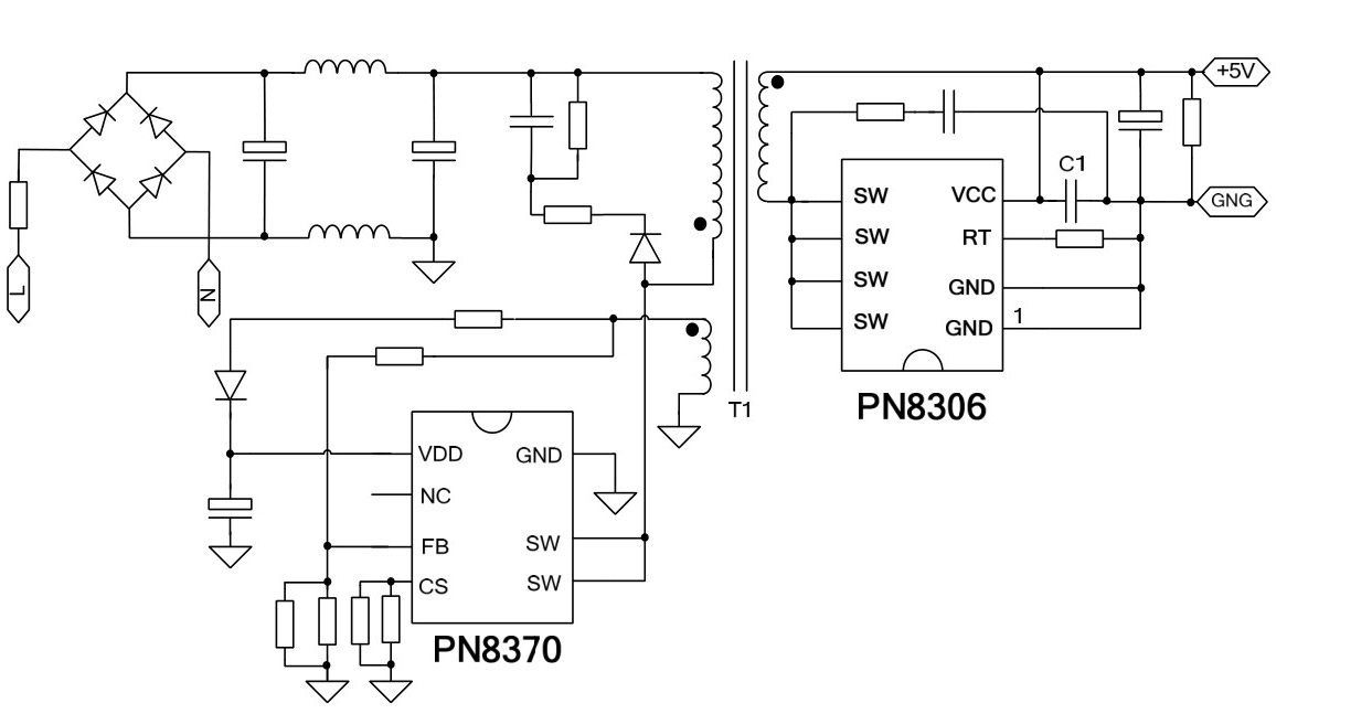5v開關(guān)電源芯片PN8370M+PN8306M 5v2a 六級(jí)能效IC方案,擁有外圍極簡(jiǎn)、高可靠性、超低待機(jī)、高效率等優(yōu)點(diǎn),備受工程師們青睞!