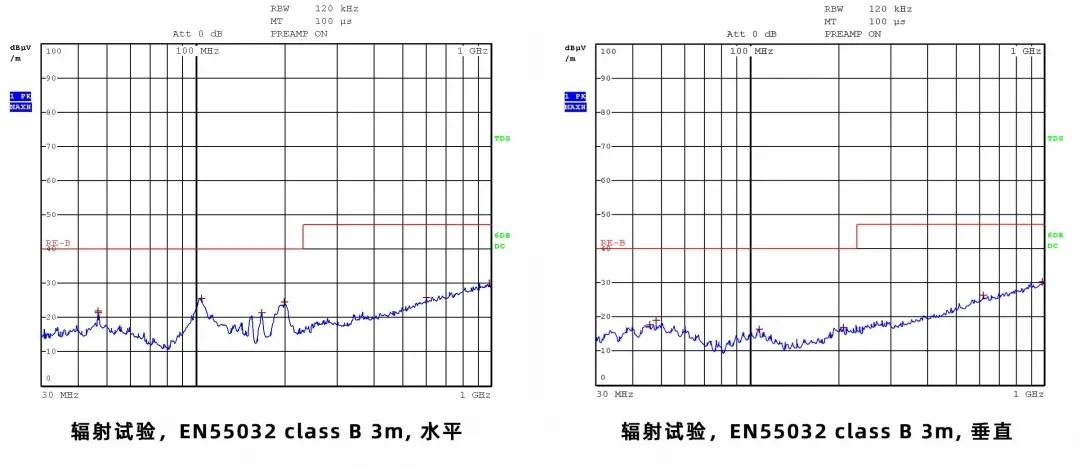EMC測(cè)試:EMI輻射滿足EN55032 Class B標(biāo)準(zhǔn)要求,裕量大于15dB。