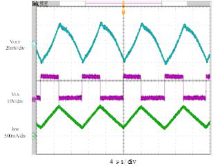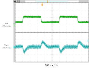 測(cè)試條件:Vin=12V, Vout=5V, Iout=0.175A~0.525A;測(cè)試結(jié)果:動(dòng)態(tài)響應(yīng)Vpp =180mV;