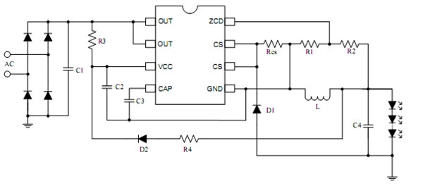 cs8656是一款帶有源功率因數(shù)校正的高精度非隔離降壓型LED恒流驅(qū)動(dòng)芯片,適用于85Vac-265Vac全范圍 輸入電壓,可以實(shí)現(xiàn)很高的功率因數(shù),很低的總諧波失真和很高的系統(tǒng)效率,由于工作在電感電流臨界連續(xù)模式,功率MOS管處于零電流開通狀態(tài),開關(guān)損耗得以減小,內(nèi)部集成500V高壓功率MOSFET,只需要很少的外圍器件,即可實(shí)現(xiàn)優(yōu)異的恒流特性,系統(tǒng)對(duì)電感電流進(jìn)行全周期采樣,可實(shí)現(xiàn)高精度輸出恒流控制,并達(dá)到優(yōu)異的線電壓調(diào)整率和負(fù)載調(diào)整率。
