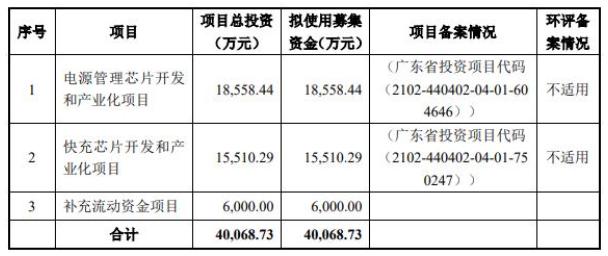 英集芯此次擬公開(kāi)發(fā)行股票數(shù)量不超過(guò)4200萬(wàn)股,不低于發(fā)行后公司總股本的10%,IPO擬募資4.01億元,將用于電源管理芯片開(kāi)發(fā)和產(chǎn)業(yè)化項(xiàng)目、快充芯片開(kāi)發(fā)和產(chǎn)業(yè)化項(xiàng)目以及補(bǔ)充流動(dòng)資金項(xiàng)目。