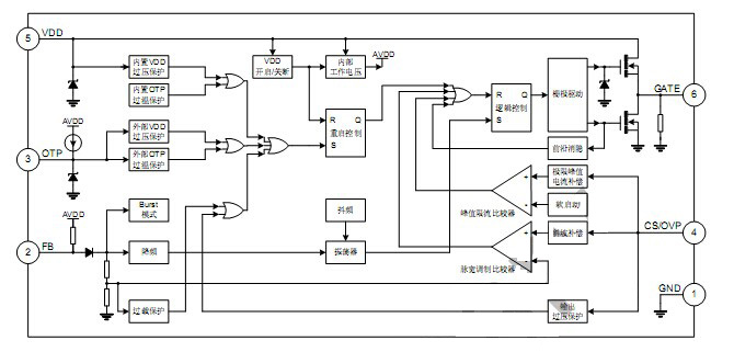 SD4873A內(nèi)部集成了各種異常狀態(tài)保護(hù)功能,包括內(nèi)置和外部可設(shè)的VDD過壓保護(hù)、前沿消隱、逐周期峰值限流、輸出過壓保護(hù)、過載保護(hù)、內(nèi)置和外部可設(shè)的OTP過溫保護(hù)等,其廣泛應(yīng)用于充電器、適配器、機(jī)頂盒電源等!