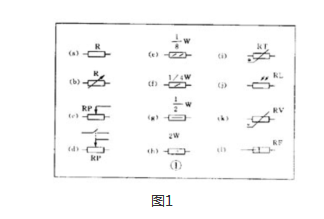 符號(hào)詳見圖1所示,其中(a)表示一般的阻值固定的電阻器,(b)表示半可調(diào)或微調(diào)電阻器;(c)表示電位器;(d)表示帶開關(guān)的電位器。電阻器的文字符號(hào)是“R”,電位器是“RP”,即在R的后面再加一個(gè)說明它有調(diào)節(jié)功能的字符“P”。在某些電路中,對電阻器的功率有一定要求,可分別用圖1中(e)、(f)、(g)、(h)所示符號(hào)來表示。還有幾種特殊電阻器的符號(hào),第1種是熱敏電阻符號(hào),熱敏電阻器的電阻值是隨外界溫度而變化的。有的是負(fù)溫度系數(shù)的,用NTC來表示;有的是正溫度系數(shù)的,用PTC來表示。它的符號(hào)見圖(i),用θ或t°來表示溫度。它的文字符號(hào)是“RT”。第2種是光敏電阻器符號(hào),見圖1(j),有兩個(gè)斜向的箭頭表示光線。它的文字符號(hào)是“RL”。第3種是壓敏電阻器的符號(hào)。壓敏電阻阻值是隨電阻器兩端所加的電壓而變化的。