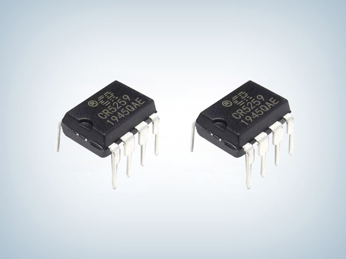 CR5259 集成了多種功能和保護特性,包括欠壓鎖定(UVLO),VDD 過壓保護(OVP),軟啟動,過溫保護(OTP),逐周期電流限制(OCP),過載保護(OLP),SENSE 引腳懸空保護,GATE 端箝位,前沿消隱等。